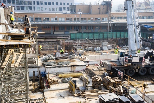 Pokračuje také výstavba moderní technologické budovy a práce na železničních mostech směrem k hlavnímu nádraží. Vlaky už jezdí po zprovozněné koleji na nové konstrukci přes Nádražní ulici, na přemostění Hořejšího nábřeží využívají provizorní ocelový most.
