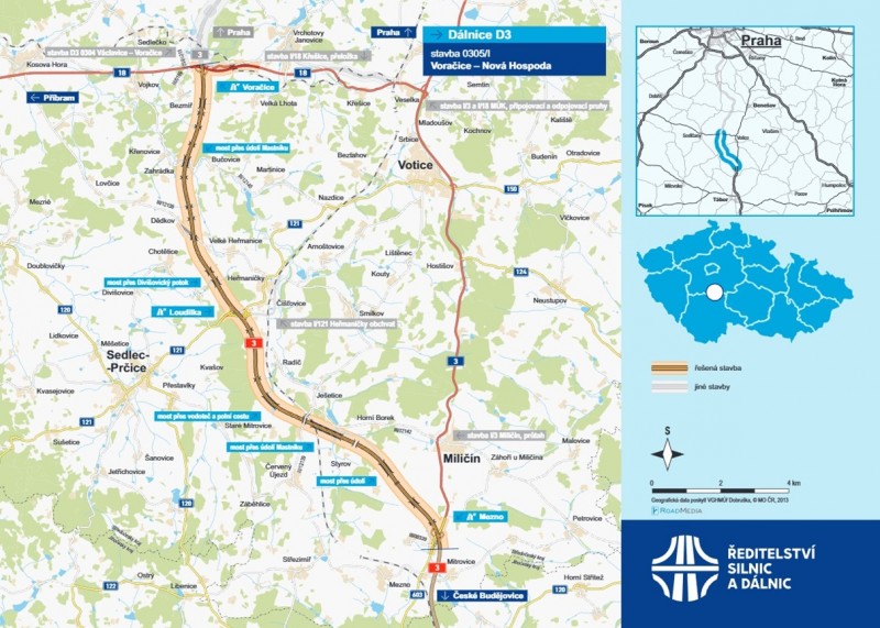 1.12. - Ředitelství silnic a dálnic (ŘSD) obdrželo územní rozhodnutí (ÚR) vydané odborem stavebního úřadu Hlavního města Prahy pro stavbu středočeské části dálnice D3 mezi Voračicemi a Novou Hospodou. Jde o první ze souboru staveb na hlavní trase, která ÚR má. Zahájení výstavby se předpokládá do tří let.