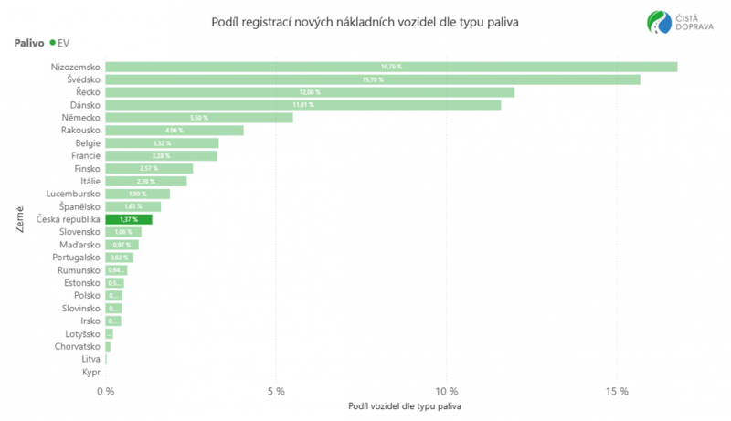 Celkové registrace nových nákladních vozidel v EU klesly o 9,8 % na celkem 225 483 kusů. Naftová vozidla si udržela dominantní postavení s 93,5% podílem na trhu, i přes pokles prodejů (-11,5 %). Registrace nákladních elektromobilů vzrostly na 8 583 kusů, tj. o 64,9 % a dosáhly 3,8% podílu na trhu (oproti 2,1 % v loňském roce). Hlavními hybateli tohoto trendu byly Nizozemsko (+192,3 %), Německo (+32,9 %) a Francie (+27,2 %), které dohromady tvoří dvě třetiny trhu s elektricky nabíjenými nákladními vozidly v EU.