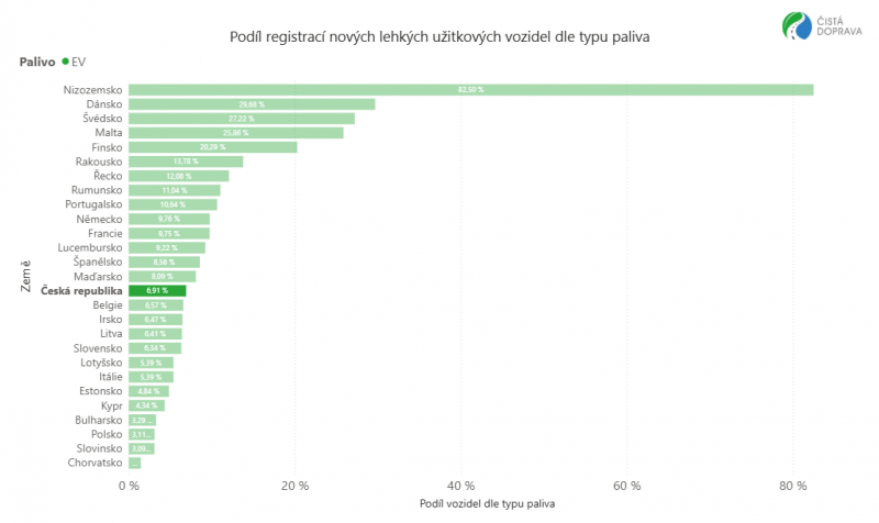 V Česku klesl celkový prodej lehkých užitkových vozidel o 14,7 % na 14 472 kusů. Naftové motorizace zůstávají dominantní volbou (87,3 % trhu), přestože jejich prodej klesl o 16 %. Prodej lehkých užitkových elektromobilů vzrostl na 1 000 vozidel (887 BEV + 113 PHEV) a dosáhl tržního podílu 6,9 %. Z pohledu značek byly v Česku nejregistrovanější Ford (179 vozidel), Maxus (177), Toyota (166), Mercedes-Benz (159) a Renault (103). Aktuálně je na českých silnicích v provozu 3 145 lehkých užitkových bateriových elektromobilů kategorie N1.
