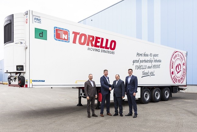 Ředitel mezinárodního prodeje Krone Andreas Völker a ředitel prodeje Real Trailer Stefano Savazzi představili svým hostům z Torella v Lübtheenu výrobní linku návěsů Cool Liner. Andreas Völker a Stefano Savazzi poděkovali za důvěru, kterou firma Torello věnuje výrobkům Krone celou dekádu: “Torello je jedním z nejvýznamnějších specialistů na chladírenskou logistiku v Itálii. Jeho zákazníci oceňují naprosto profesionální přístup. Velmi se těšíme na další spolupráci, věříme, že společně můžeme dále růst.”