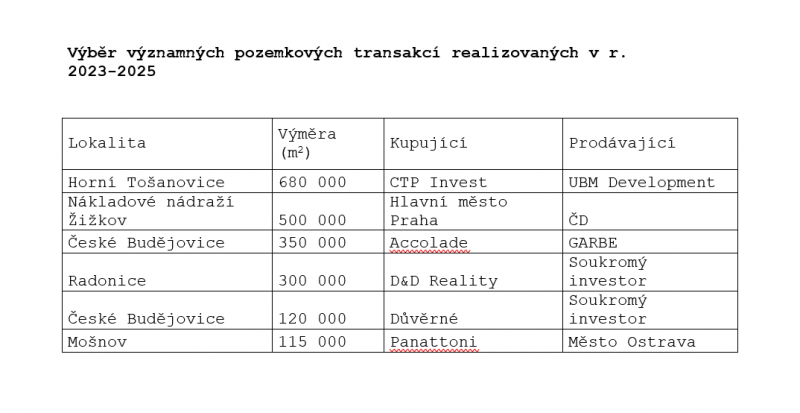 6.12. - Krize povolovacího stavebního řízení spojená s jeho nepovedenou digitalizací dolehla i na oblast transakcí s rozvojovými pozemky pro další výstavbu. Stále delší proces vyřízení povolení záměru stavby rozevřela cenové nůžky mezi pozemky, jež platné povolení mají, a těmi, které jím nedisponují. Podle realitně-konzultantské společnosti 108 Real Estate, která se na tento typ obchodů specializuje, může být rozdíl v ceně až dvojnásobný. V roce 2025 přitom aktivita investorů nepolevovala, spíše mírně rostla, pouze vyjma nemovitostí pro spekulativní výstavbu bez předem známého nájemce. To se projevilo především na růstu ceny u skvěle připravených pozemků v atraktivních lokalitách, kde není výjimečná cena 150 EUR za metr čtvereční. Netýká se to jen obvyklých oblastí kolem Prahy a Brna, ale rovněž Liberce.