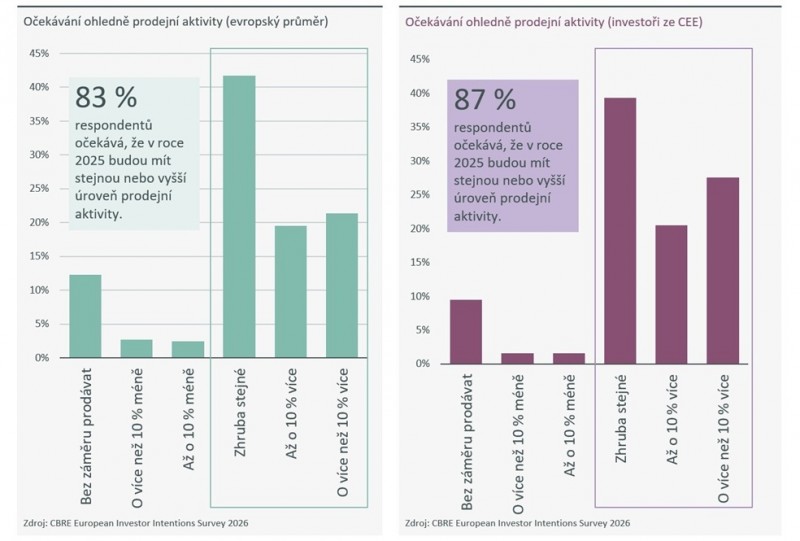 Zatímco evropský průměr ukazuje, že 56 % investorů zúčastněných v průzkumu plánuje zvýšit nákupní aktivitu, v regionu CEE je toto číslo ještě o něco vyšší a dosahuje 58 %. Mnohem výraznější rozdíl se však projevuje na straně prodejů. Téměř polovina investorů v CEE (48 %) plánuje v letošním roce prodat více aktiv než v roce 2025, což je výrazně nad evropským průměrem (41 %). Ještě pozoruhodnější je skutečnost, že pouze 10 % investorů v CEE neplánuje žádné prodeje. Jde o historicky nejnižší podíl, když ještě před dvěma lety šlo o 22 %.