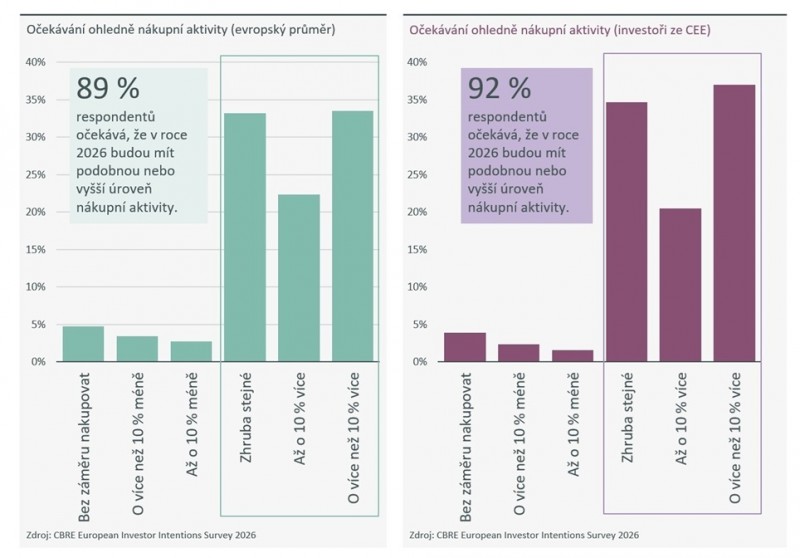 14.2. - Investoři v regionu střední a východní Evropy vstupují do roku 2026 s výrazně vyšší aktivitou než jejich západoevropští protějšci. Vyplývá to z nejnovějšího průzkumu „European Investor Intentions Survey 2026“, který realizovala společnost CBRE. Průzkumu se zúčastnilo téměř 700 investorů napříč Evropou, přičemž každý pátý respondent pochází buď z regionu CEE, nebo se na něj aktivně zaměřuje.