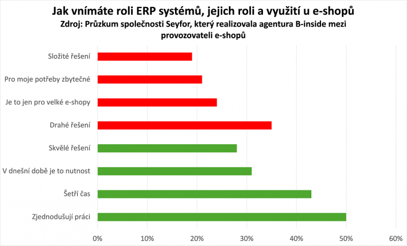 „Tento pohled se promítá i do vnímání přínosů. Více než třetina respondentů považuje ERP systémy za zbytečně drahé nebo složité, zejména pokud je zatím sama nevyužívá. Naopak mezi většími e-shopy, které již ERP mají, převládá názor, že jde o nezbytný nástroj pro další růst a udržení kontroly nad provozem,“ řekl Tomáš Komárek.