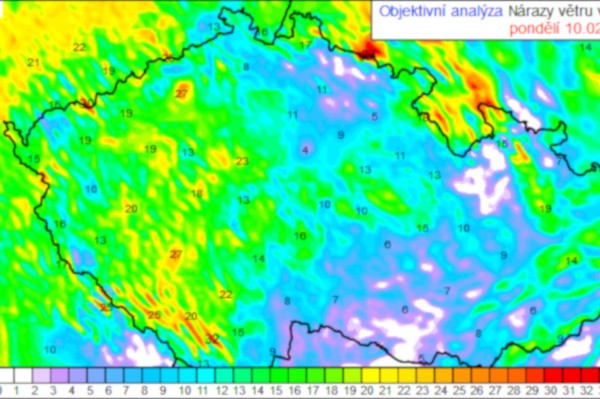 10.2. - Vítr v Česku dosáhl v noci na dnešek rychlosti až 180 kilometrů za hodinu, už brzy ráno přerušil mnohde dopravu i dodávky proudu až pro 120 tisíc odběratelů. Spadlé stromy si kromě výpadků proudu a přerušení železniční i silniční dopravy vyžádaly také jedno zranění. Na Prachaticku byl jeden člověk lehce zraněn po pádu stromu na auto. Během dopoledne se situace zlepšila, do 11:00 klesl počet míst bez proudu na 76 000 a ubylo i výluk na tratích. Vítr ovlivnil i leteckou dopravu.