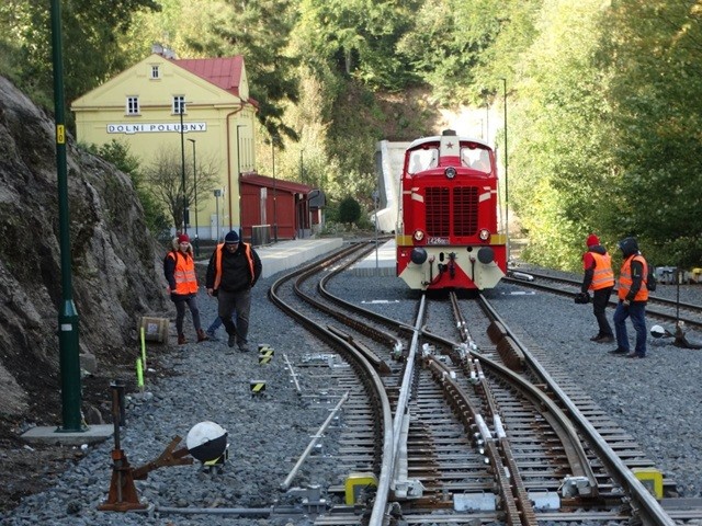 14.10. - „Dne 2. 10. proběhla další zkušební jízda lokomotivy řady 715 na trati Tanvald–Kořenov, zaměřená na ověření funkčnosti tří speciálních ozubnicových výhybek s Abtovou ozubnicí, které jsme navrhli, vyrobili a dodali. Během testu byly všechny tři výhybky pojížděny různými rychlostmi i směry, včetně čistě ozubnicového pohonu. Zároveň jsme zkoušeli, jak přesně ozubené kolo dvojkolí lokomotivy zapadá do hřebenů v kolejišti na různých místech výhybky. Výsledek? Naše konstrukční řešení je správné. Výhybky jsou plně vyhovující pro běžný i plnohodnotný ozubnicový provoz. Jsme hrdí, že můžeme přispět k obnově tohoto evropského technického unikátu,“ řekl Lukáš Raif, vedoucí oddělení techniky společnosti DT – Výhybkárna a strojírna.